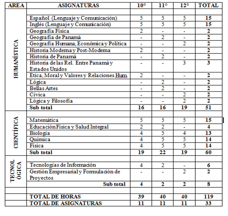En el año 2010 se crearon los siguientes niveles educativos: 10º, 11º y 12º; empezó con el Plan de Estudio Bachiller en Ciencias con Énfasis en Informática,Los 11º y 12º siguen con el Bachiller en Ciencias con Instrumentación en Informática hasta terminar con este Plan de Estudio cuya fecha de culminación es en el año 2011. En el 2011 inició la Transformación Curricular en este Centro lo cual permitió nuevas ofertas académicas Bachiller en Ciencias, Bachiller en Informática, Bachiller en Comercio, Bachiller en Turismo, Bachiller en comercio y Bachiller en Contabilidad.